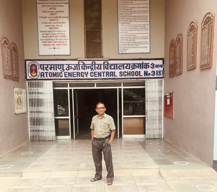MY AECS SCHOOLMATE KK SARASWAT (1976 BATCH)AT OUR SCHOOL BUILDING,RAWATBHATA